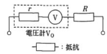 図に示すように、破線で囲んだ電圧計Voに、Voの内部抵抗rの3倍の値の直列抵抗器(倍率器)Rを接続すると、測定範鴎はVoの何倍になるか。